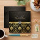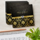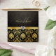 Elegant Gold and Black Damask Envelopes with Monogram and Diamond Heart accents.