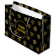 Elegant gold snowflakes on black Holidays Gift Bag. Text can be personalised.