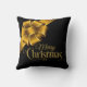 Elegant Gold and Black Merry Christmas Bow Holiday Throw Pillow