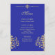 An elegant rich royal blue and gold damask wedding invitation. This invitation is part of a set.