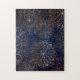 Elegant Gold and Dark Blue Floral Mandala Pattern Jigsaw Puzzle