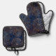 Elegant Gold and Dark Blue Floral Mandala Pattern Oven Mitt & Pot Holder Set