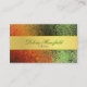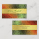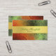 Elegant business card, with a orange, green, and gold foil looking background. Graphics of a gold beveled looking stripe text area, stretches across the middle. Green and black text is ready to personalise, with your information.