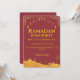 Step into an enchanting Arabian night with this beautifully designed Iftar invitation, featuring a serene desert scene with camels, swaying palms, and a majestic mosque under a golden sky. The gold and Red add a touch of elegance, making it perfect for gathering loved ones in the spirit of Ramadan. Customise the text to make it truly yours and invite guests to a night of faith, food, and joy!