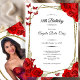 This elegant red, gold, and black 18th birthday debut invitation has red roses red butterflies with a personalizable template to create your own message. Add your photo on the back to personalize the image. The invitation template is customizable in the listing editor and is also available as a digital download that's printable after you personalize it.