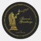 Elegant Gold Angel on Black Christmas Classic Round Sticker