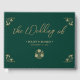 Capture your guests' memories of your special day with our elegant gold Art Deco and calligraphy wedding guest book. With its classic Art Deco and calligraphy design, our gold and green wedding guest book is sure to become a cherished keepsake for you and your spouse, reminding you of the love and joy shared with your family and friends on your wedding day.