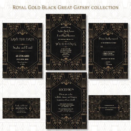 Vintage Gold Black Art Deco Great Gatsby design. It features a Great Gatsby art deco style, a Roaring 1920's old Hollywood, with faux gold foil Fleur-de-lis overlay! Use Customise tool to add your information. For more, visit please, my Royal Gold Black Great Gatsby Collection.
