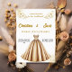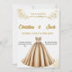 Make a stunning statement with this sophisticated wedding invitation featuring a beautiful champagne-gold ballgown dress illustration. The design is enhanced with delicate golden floral accents and a classic sweetheart neckline dress silhouette. Perfect for the bride dreaming of a fairytale wedding. The elegant typography and soft colour palette create a harmonious blend of modern romance and timeless grace. This invitation sets the perfect tone for an unforgettable celebration. Fully customisable to include your special day's details.