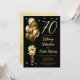 Elegant Gold Balloons on Black 70th Birthday Party Invitation