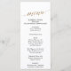 This elegant gold and black calligraphy dinner menu card is perfect for a simple wedding. The neutral design features a minimalist card decorated with romantic and whimsical faux gold foil typography. This menu can be used for a wedding reception, rehearsal dinner, or any event.
