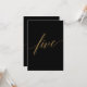 This elegant gold and black calligraphy table number five is perfect for a simple wedding. The neutral design features a minimalist card decorated with romantic and whimsical faux gold foil typography. The card prints on the front and back (double-sided). Other table numbers in the collection are sold separately.