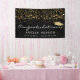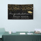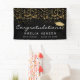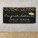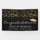Elegant Gold Black Confetti Graduate Party Sign. Trendy golden script with golden confetti and a golden graduation cap on black background. Personalise it with your grad’s name, school and year.