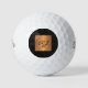 Luxury elegant monogram initials personalised golf ball with a gold glitter square over a black leather look background.