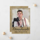 Announce your 2023 graduation in style with this elegant custom photo graduate announcement card. This design features your photo on the front bordered with a rustic gold texture. Below is the word "Graduate" in black script with your name and school to personalise. The back of the card has a faux gold texture. Designed by Susan Coffey.