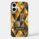 Elegant gold black silver geometric triangles chic iPhone 16 Case. To make it extra special, it is also monogrammed with name or initials or any text, click the "customise further" link and use the design tool to modify the design if you like.