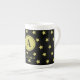Elegant Gold & Black Star Pattern Monogram Bone China Mug
