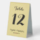 Create your own custom, personalised, modern, elegant, stylish, simple, minimalist, classy, stylish, chic, beautiful black typography script on faux gold background, red hearts, white plastic polystyrene, table number tent sign, featuring the bride & groom's names and the wedding date. To customise, simply type in the table number, the couple's name (bride & groom / husband & wife), and the wedding / marriage anniversary date. While you personalise, you'll be able to see a preview throughout. Perfect for wedding, bridal shower, anniversary celebrations, dinner party, or other special occasion, for wedding planners, event managers, venue management companies, restaurant, cafe, hotels, resorts, hospitality industry, convention centres, small business, and more.