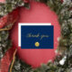 The modern and simple script for the words "thank you" conveys your appreciation with a touch of class. The combination of gold and blue creates a stylish and festive holiday theme that is sure to delight your recipients.