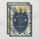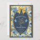 At the centre, a shimmering oval-shaped frame elegantly encloses all the important details, topped with a stunning satin bow for an extra touch of refinement. Floating gracefully across the design, dusty blue party balloons add a festive charm, making this announcement perfect for setting the tone of an unforgettable celebration.