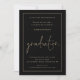 Elegant Gold Border Black Grad Luncheon Graduation. Graduation is in a set stylish script and easily personalise the rest of the text which is in gold, on black, with a single line border.