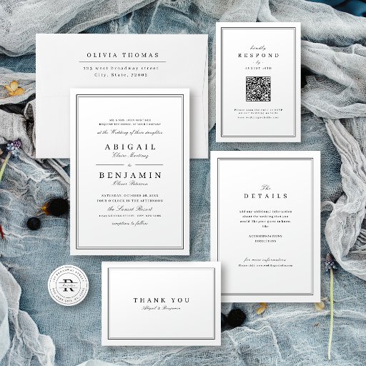 Elegant minimalist design with real gold foil borders, simple and classy. Great for modern classic wedding, vintage wedding and formal wedding.