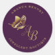 Elegant gold butterfly on purple, monogramed classic round sticker