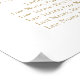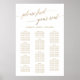 This elegant gold calligraphy 90+ guest seating chart poster is perfect for an elegant wedding. The design features romantic and whimsical faux gold foil typography. This sign can be used to organise your guests alphabetically or by table number. This wedding poster includes enough room for up to about 90 guests. Make room for more (or less) guests by clicking the "customise" button and decrease or increase the size of the font. In addition to the placement of each guest, personalise this sign with the names of the bride and groom and the wedding date.