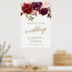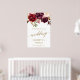 This elegant gold calligraphy floral wedding welcome poster is perfect for an autumn wedding. The design features romantic and whimsical faux gold foil typography with a gorgeous bouquet of blush pink, marsala and burgundy flowers. Customise the poster with the name of the bride and groom, and the date and location of the wedding.