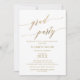 This elegant gold calligraphy graduation party invitation is perfect for a simple grad party. The neutral design features a minimalist card decorated with romantic and whimsical faux gold foil typography.