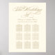 Grand traditional calligraphy in warm gold graces this elegant wedding seating chart on a soft ivory background. "The Wedding Of" is beautifully rendered in ornate script above your names and date. The structured table layout seats guests with polished ease. Fully customisable.