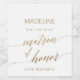 This elegant gold calligraphy matron of honour proposal wine label is perfect for a simple wedding. The neutral design features a minimalist label decorated with romantic and whimsical faux gold foil typography. Customise the wine bottle label with the name of the bridesmaid, and the name of the bride.