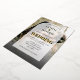 This is a modern and elegant wedding invitation. It features a full photo template with a dark grey gradient and a translucent arch for your personal information. This product also has the added luxury of real gold foil. Very easy to customise.