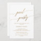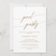 This elegant gold calligraphy pool party birthday invitation card is perfect for a simple event. The neutral design features a minimalist card decorated with romantic and whimsical faux gold foil typography.