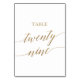 Elegant Gold Calligraphy Table Number Twenty Nine