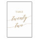 This elegant gold calligraphy table twenty two table number is perfect for a simple wedding. The neutral design features a minimalist card decorated with romantic and whimsical faux gold foil typography. The card prints on the front and back (double-sided). Other table numbers in the collection are sold separately.