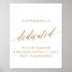 This elegant gold calligraphy wedding dedication sign is perfect for a simple wedding. The neutral design features a minimalist poster decorated with romantic and whimsical faux gold foil typography.