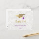 Elegant gold cap with purple tassel personalised graduation Thank You card. Easily change the name of the graduate and year using the personalise this template menu. Create the perfect customised graduation thank you card.