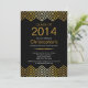 Formal graduation party invitation featuring a modern gold chevron top and bottom border set on a black background. Flip our stylish invitation over to find a matching back for an extra special touch. Can also be used for a graduation announcement. Easy to personalise with your class of 2014 grad party information. Available in our shop in a variety of popular high school and college school colours.