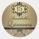 This Elegant customisable Quinceanera Sticker features a black & gold damask design. Customise it by adding your details in the font of your choice!
