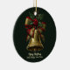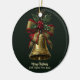 Elegant Gold Christmas Bell with Festive Bow Holly Ceramic Tree Decoration