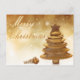 A precious and elegant Merry Christmas illustration featuring a Christmas tree and a Christmas tree ball with a ribbon in noble gold on a sparkling festive bokeh background.