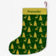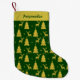Elegant Gold Christmas Trees Reindeer on Green Small Christmas Stocking