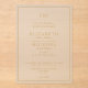 This refined acrylic wedding invitation exudes timeless elegance, combining classic sophistication with a personal touch. Featuring a striking gold monogram crest, it invites guests to celebrate the marriage of the bride and groom. The crisp, minimalist design is complemented by graceful typography, setting the tone for an unforgettable celebration of love.