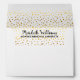This envelope features the class year in gold and black hand lettered script on the back flap, and faux gold confetti on a white background with the graduate's name in script and school of graduation inside. Will go perfectly with your Elegant Gold graduation announcements and invitations.