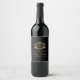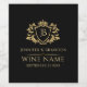Sophisticated wine label featuring a gold vintage crest frame with a customizable monogram. The black background and customizable text add a touch of elegance to any bottle of wine. This monogrammed label is the perfect gift for birthdays, weddings, or any special occasion.