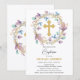 Elegant Gold Cross Baptism Floral Invitation
