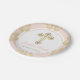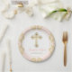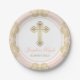 Elegant Gold Cross Blush Damask Girl Baptism Paper Plate