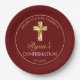 Elegant Gold Cross Burgundy Confirmation Reception Paper Plate