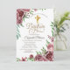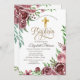 Elegant Gold Cross Burgundy Roses Baptism Invitation